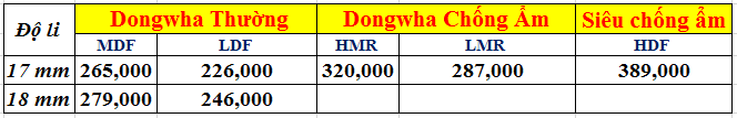 Bảng giá ván MDF 18mm.