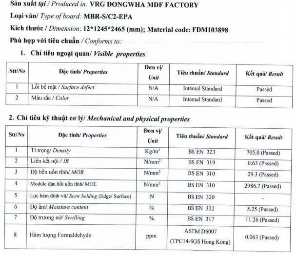 Tham khảo tiêu chuẩn ván MDF Carb P2:
